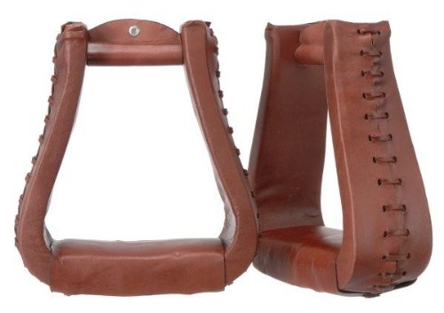 Oversized Leather Stirrups These stirrups are made of quality leather and will accomodate most overboots, hunting/hiking, or insulated boots. Leather tread plate gives added traction in wet conditions. Inside measurements are 6" wide x 3" deep x 6" tall. 3" neck. Sold as Pair